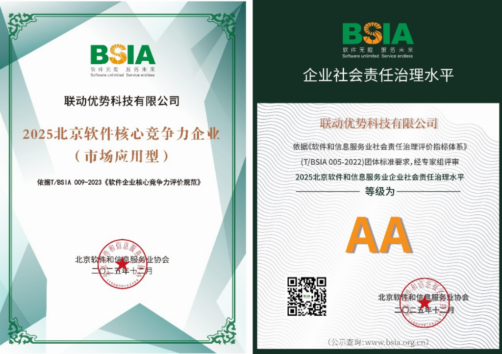 联动优势荣膺“2025北京软件企业核心竞争力评价(市场应用型)企业”等多项殊荣